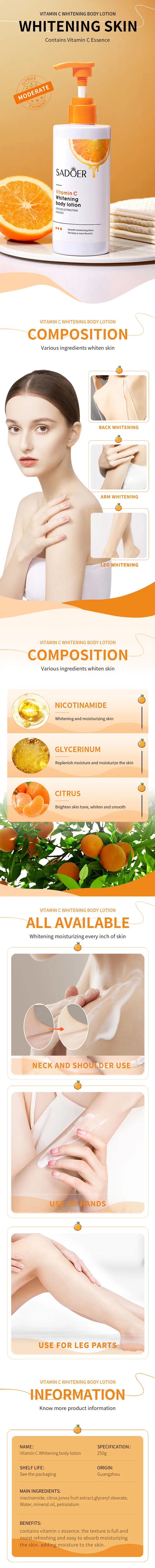 High Quality SADOE Body Cream Moisturizing Nourishing Lightening Cream Natural Skin Whitening Vitamin C Body Cream