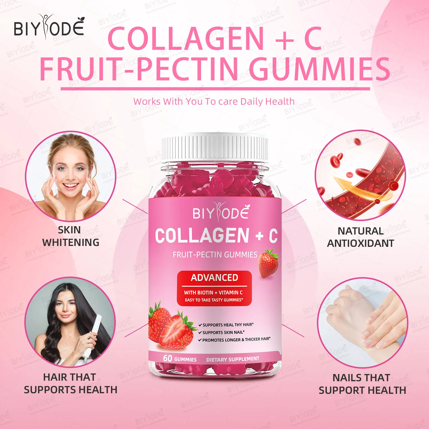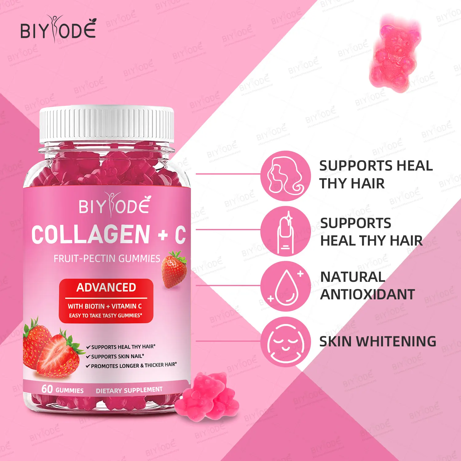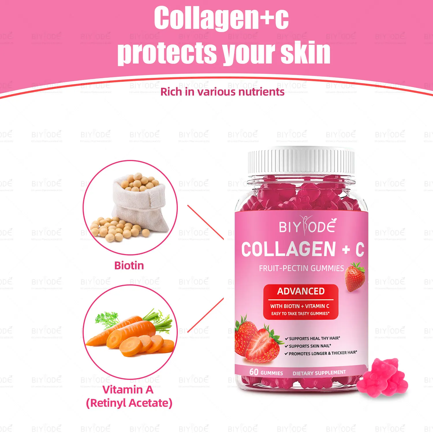 • Jiabeikang Factory Vitamin and Supplement Wholesale Organic Multivitamins Skin Hair Nails Health Collagen+C Fruit-Pectin Gummies