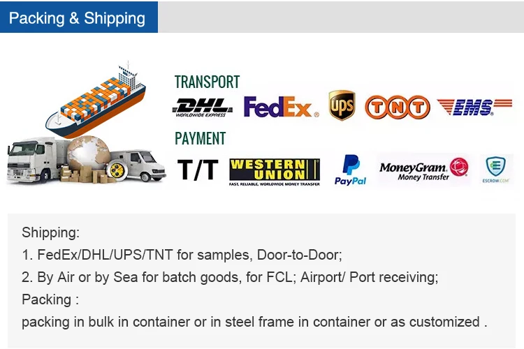 Q.How to obtain some free samples? A.If you are interested in our products, we are happy to provide you with free samples, but you will need to pay for the shipping fee, and we will send them out by express delivery within a week