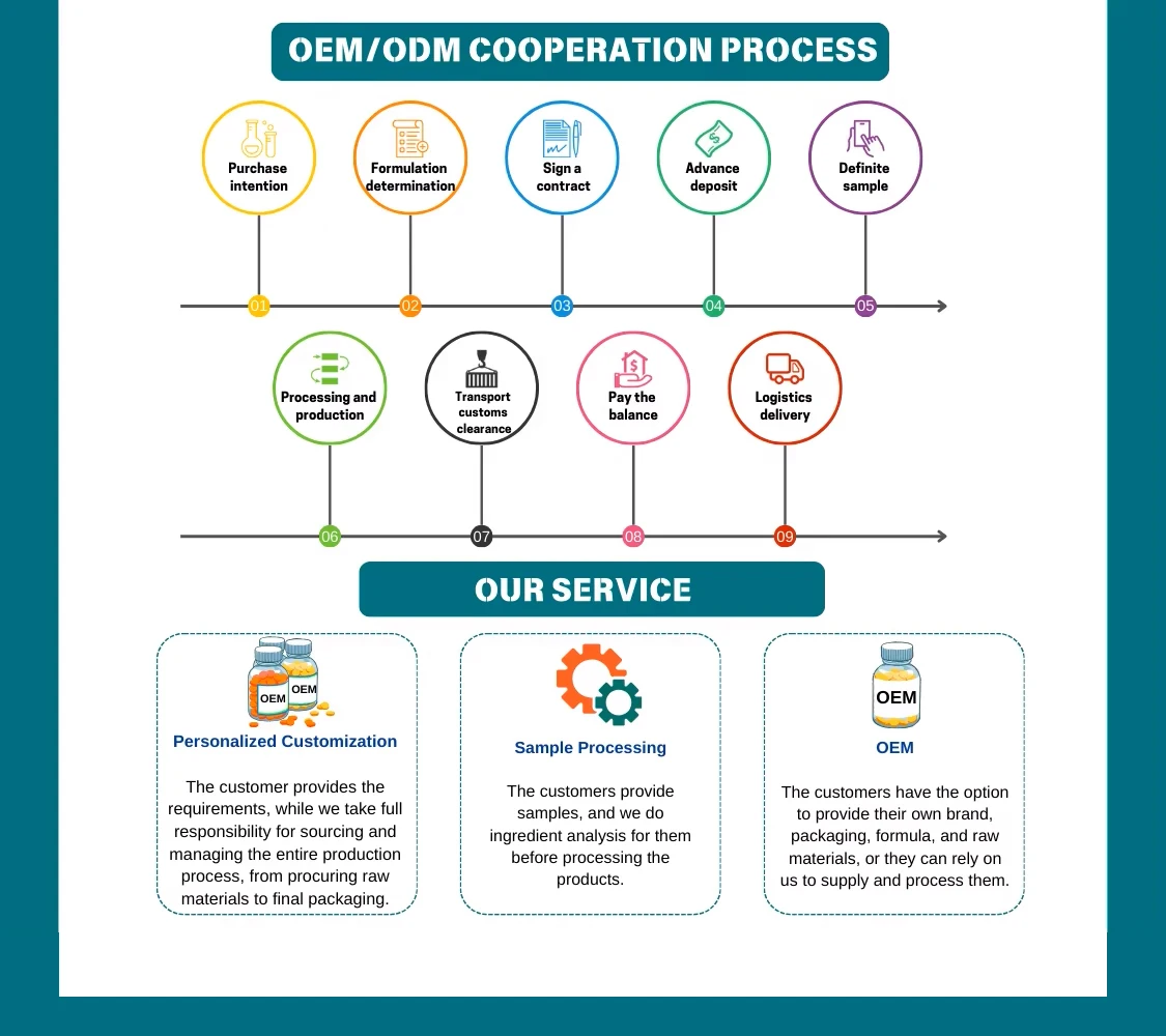 1.Are you a factory or trading company ? We are a professional health food supplement manufacturer established in 2009 Zhengzhou National High-tech Industrial Development. and we have a professional team of over 200 workers . Your visit is warmly welcome