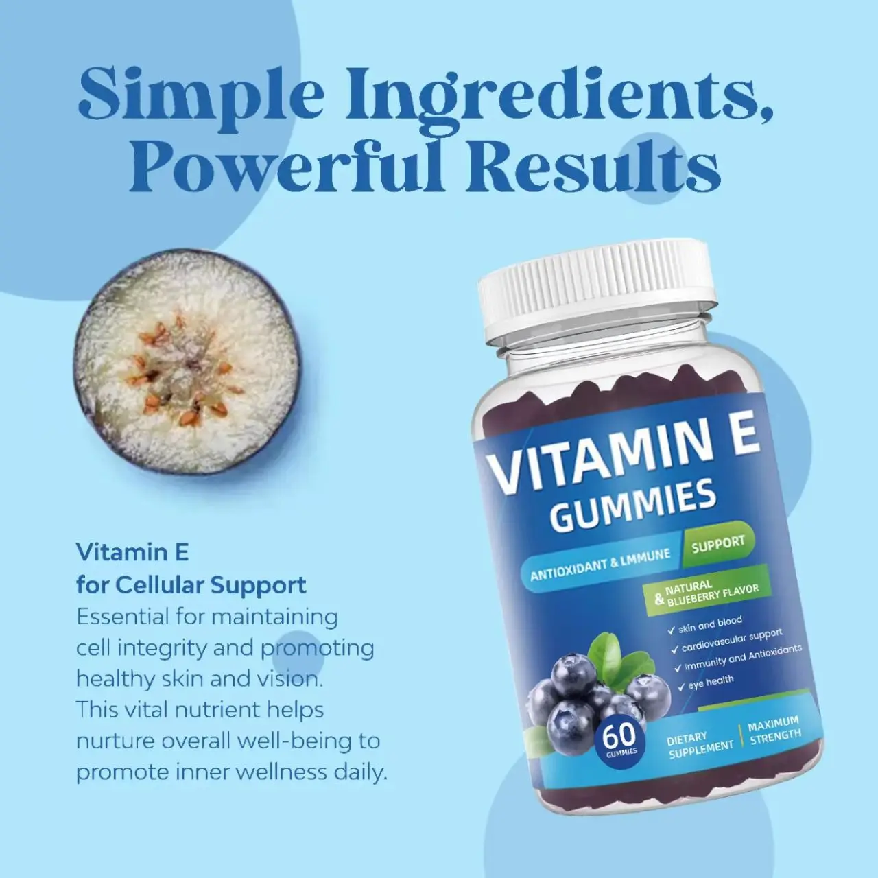 OEM/ODM Natural Blueberry Flavor Vitamin E Gummies for Eye Health